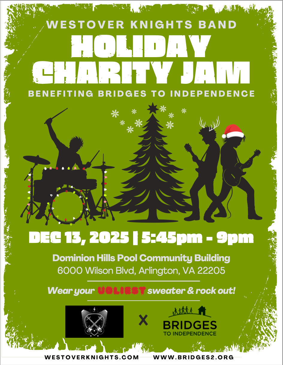 The Westover Knights are a community-rooted group and rock band from Arlington, Virginia, formed by dads who decided the garage — and our community — deserve a second act.Their sound blends classic rock, alternative anthems, and Americana from STONE TEMPLE PILOTS and TOM PETTY to FOO FIGHTERS, RADIOHEAD, and GOOSE.The Knights play for good times and good causes, turning songs you love, and forgot you loved!, into resources for Washington, DC and Northern Virginia area communities.